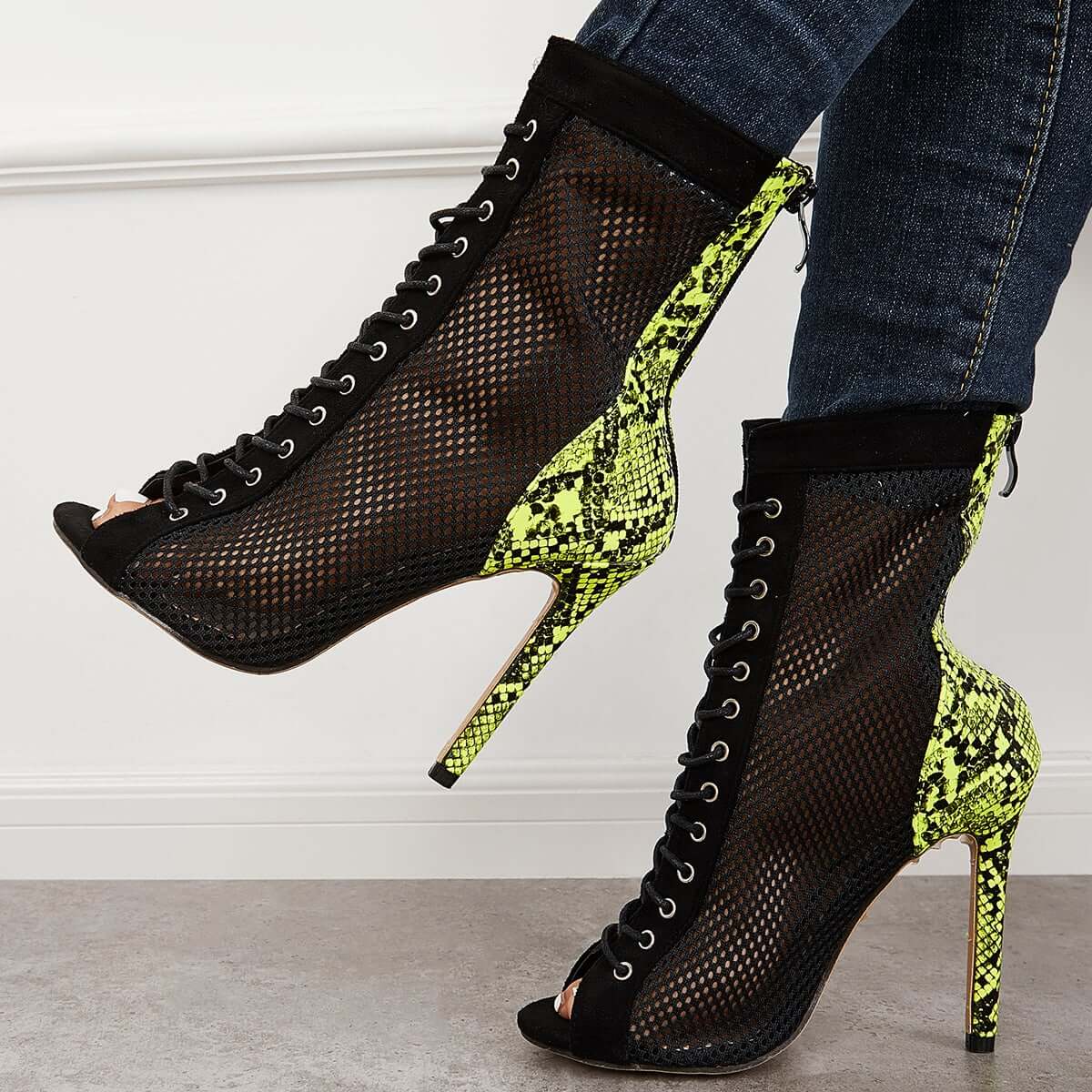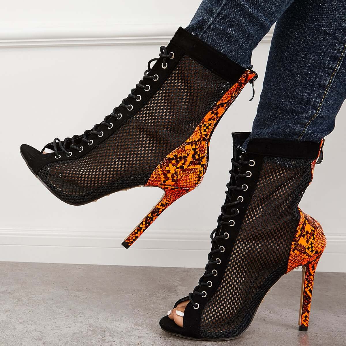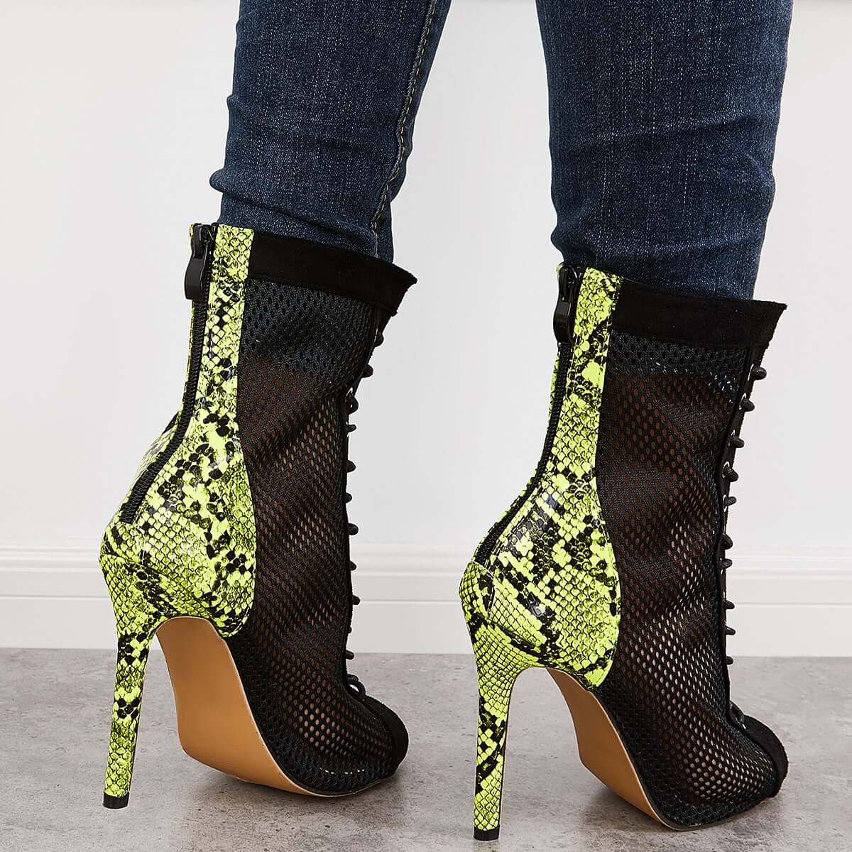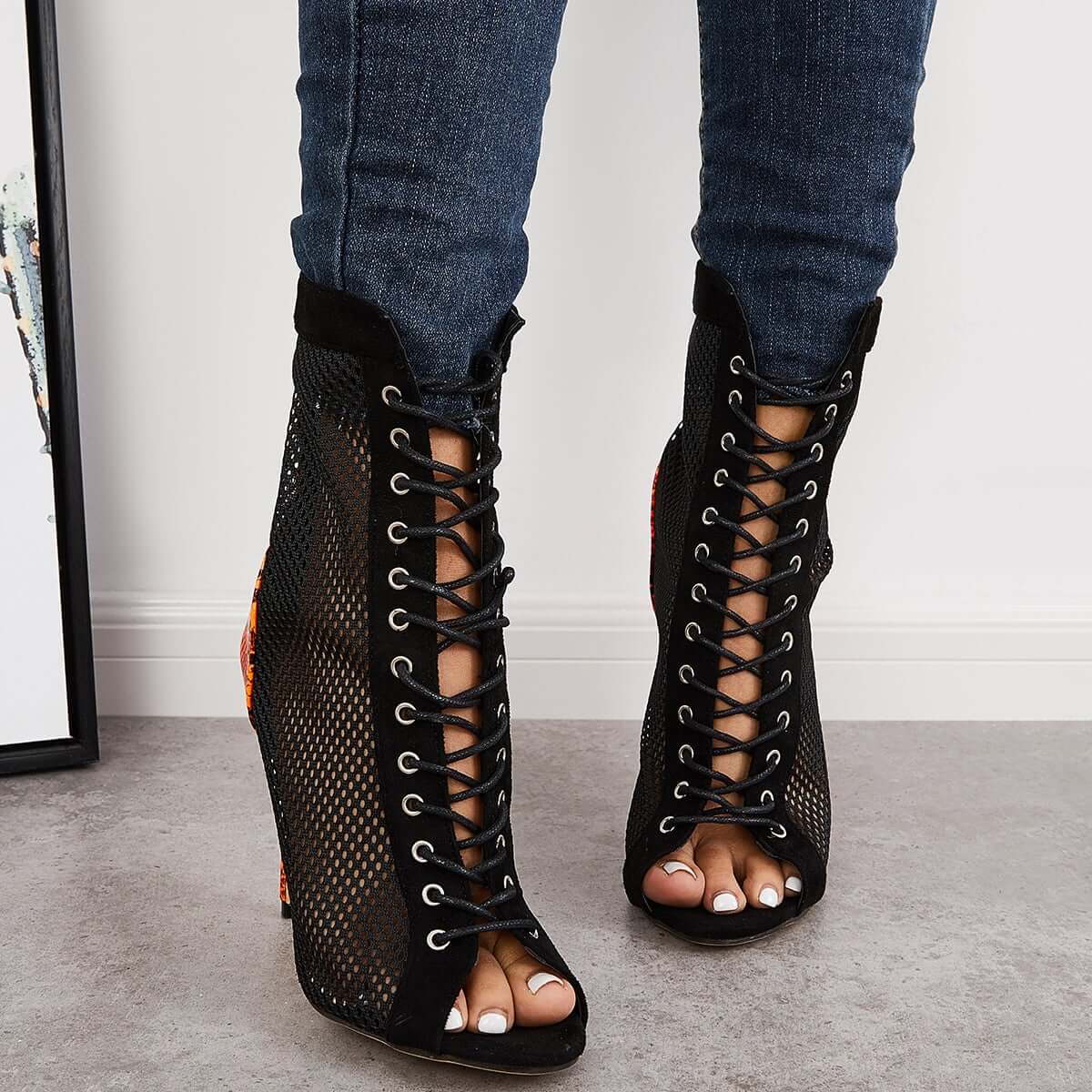 Mesh Peep Toe Stiletto High Heel Pumps Ankle Boots