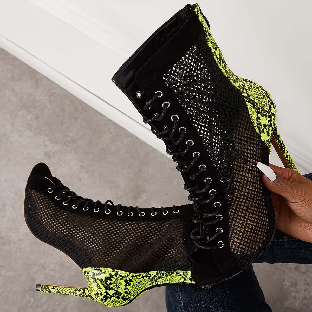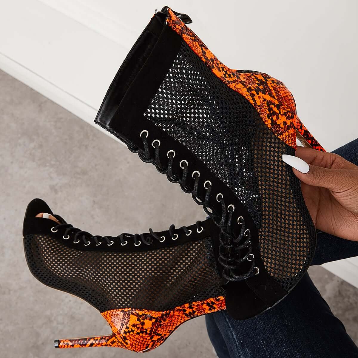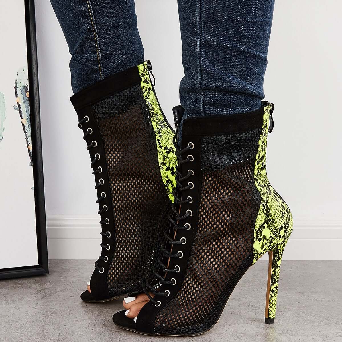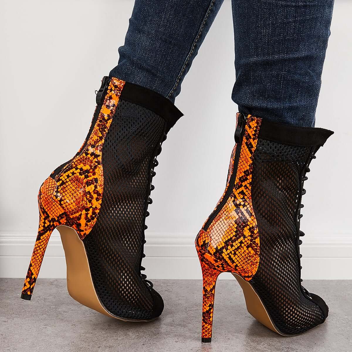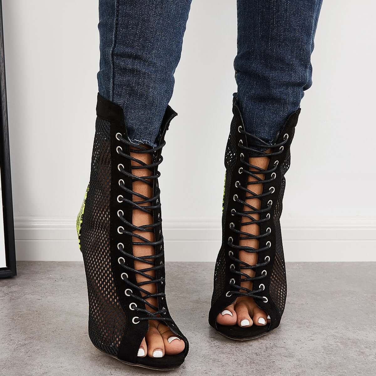 Mesh Peep Toe Stiletto High Heel Pumps Ankle Boots