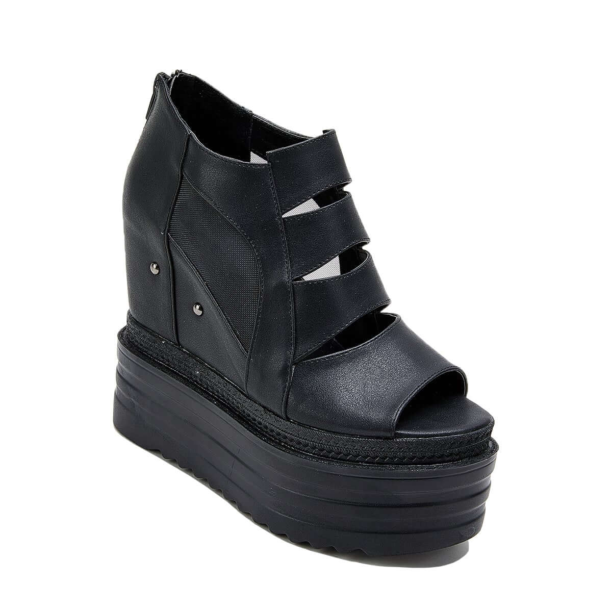 • Goth Black Platform Sandals Punk Chunky High Heel Shoes