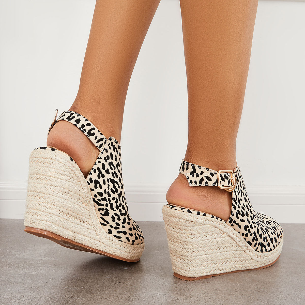 Peep Toe Platform Espadrille Wedges Ankle Strap Slingback Sandals