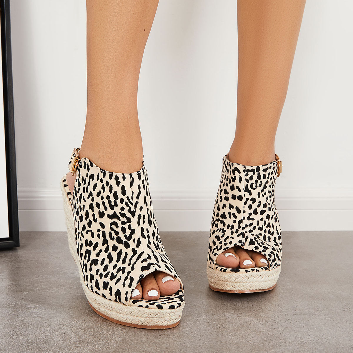 • Peep Toe Platform Espadrille Wedges Ankle Strap Slingback Sandals