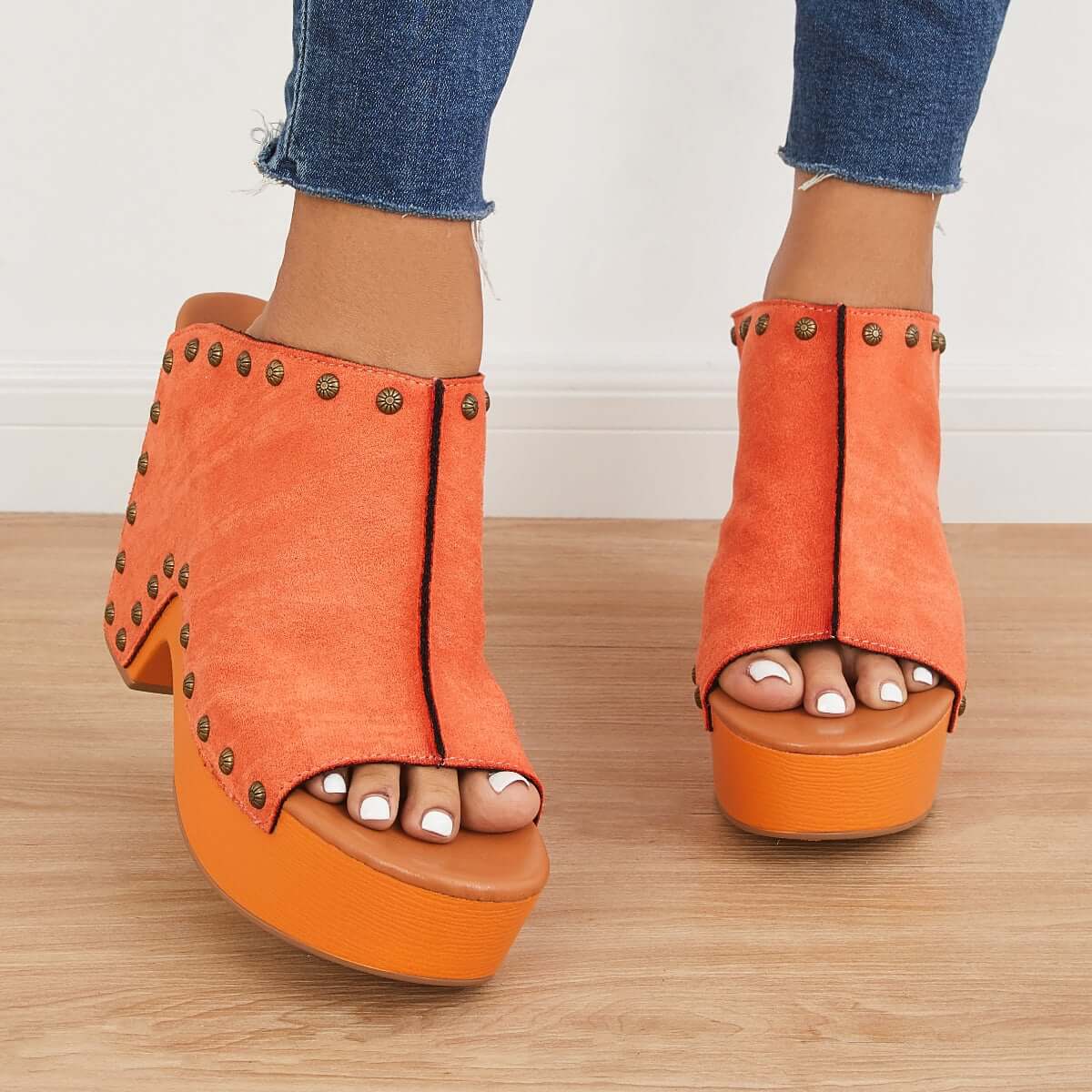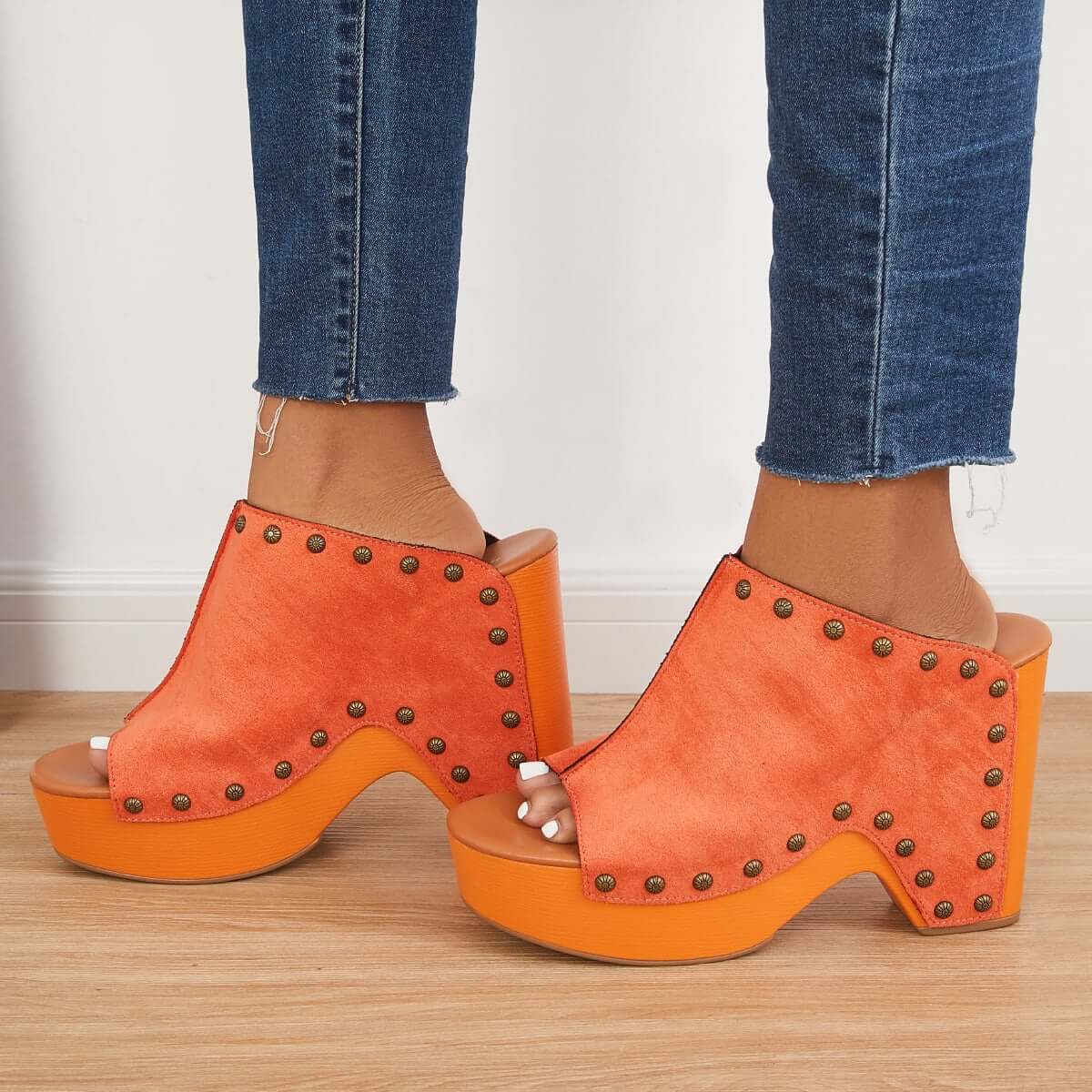 Retro Chunky Platform Heel Mules Slip on Sandals