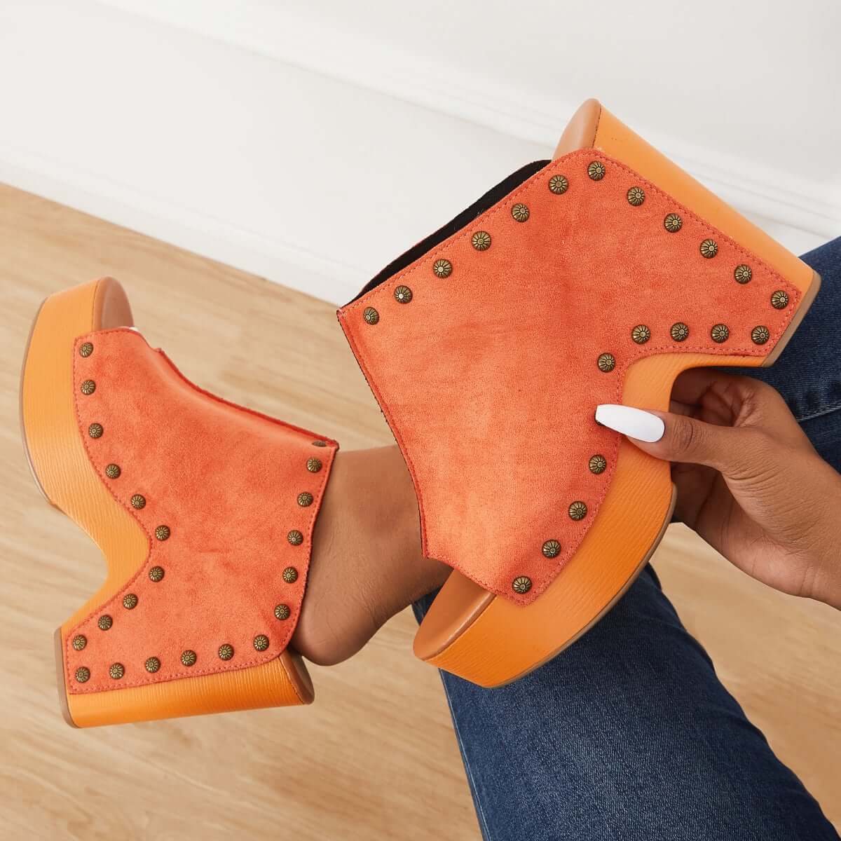 • Retro Chunky Platform Heel Mules Slip on Sandals