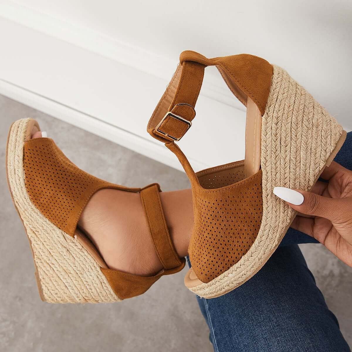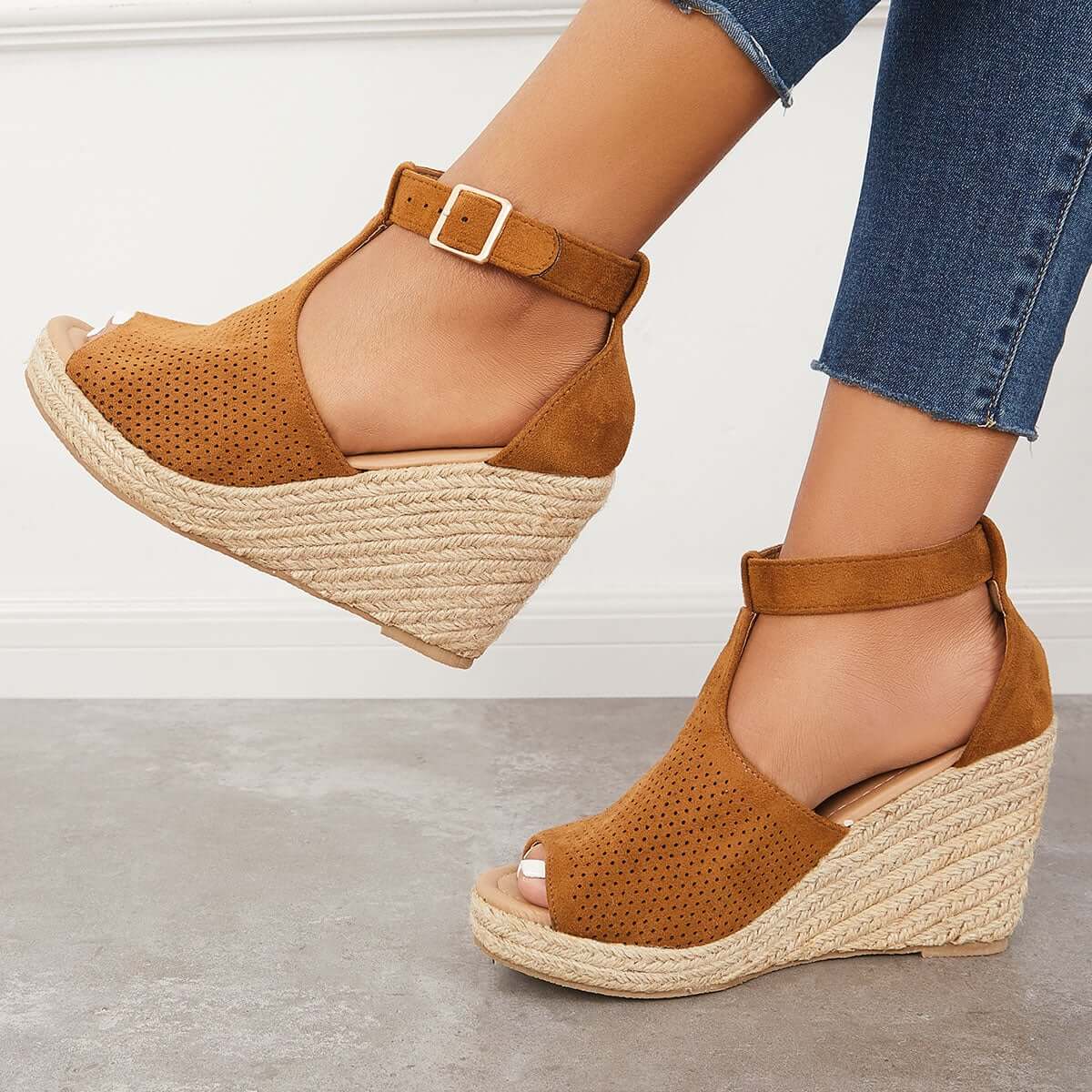 ?Super cute platform espadrilles, these pumps sandals features rope wedge heel, with ankle buckle straps, peep toe, the high heel design make your legs looked skinnier, also keep you comfy wear all day