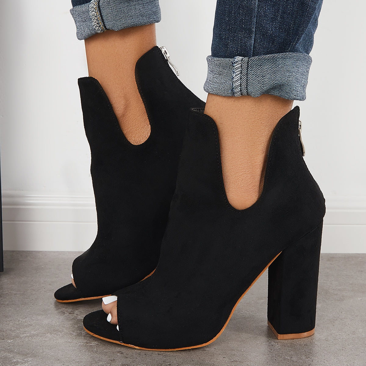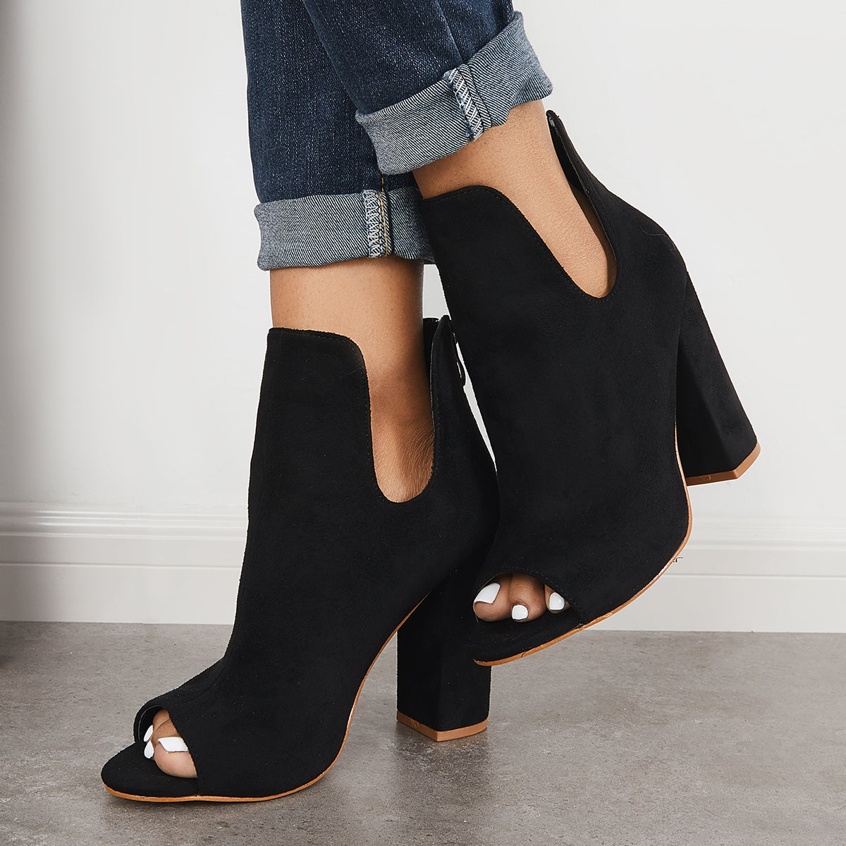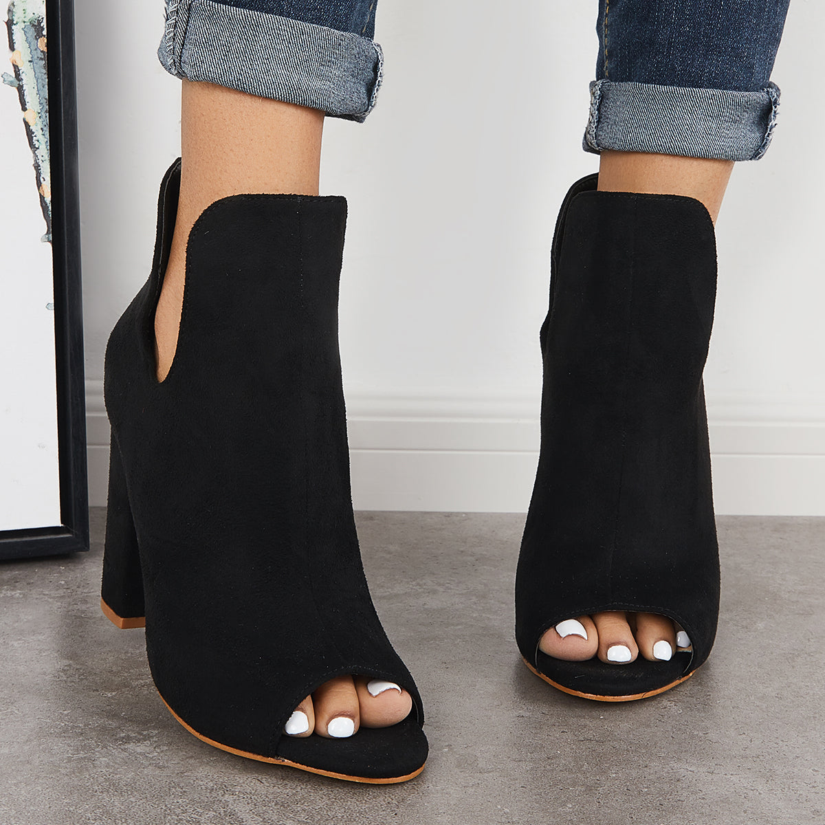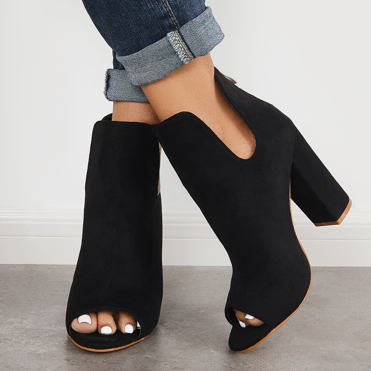 Cut Out Peep Toe Block Chunky High Heel Ankle Boots