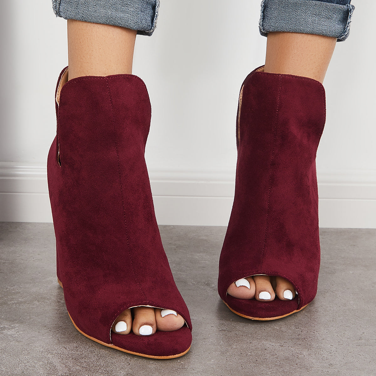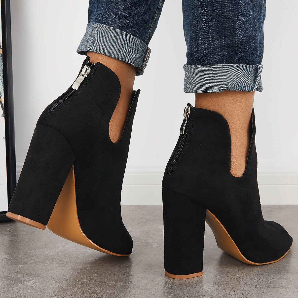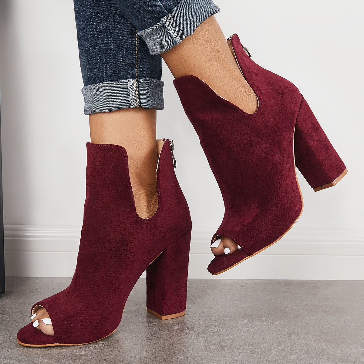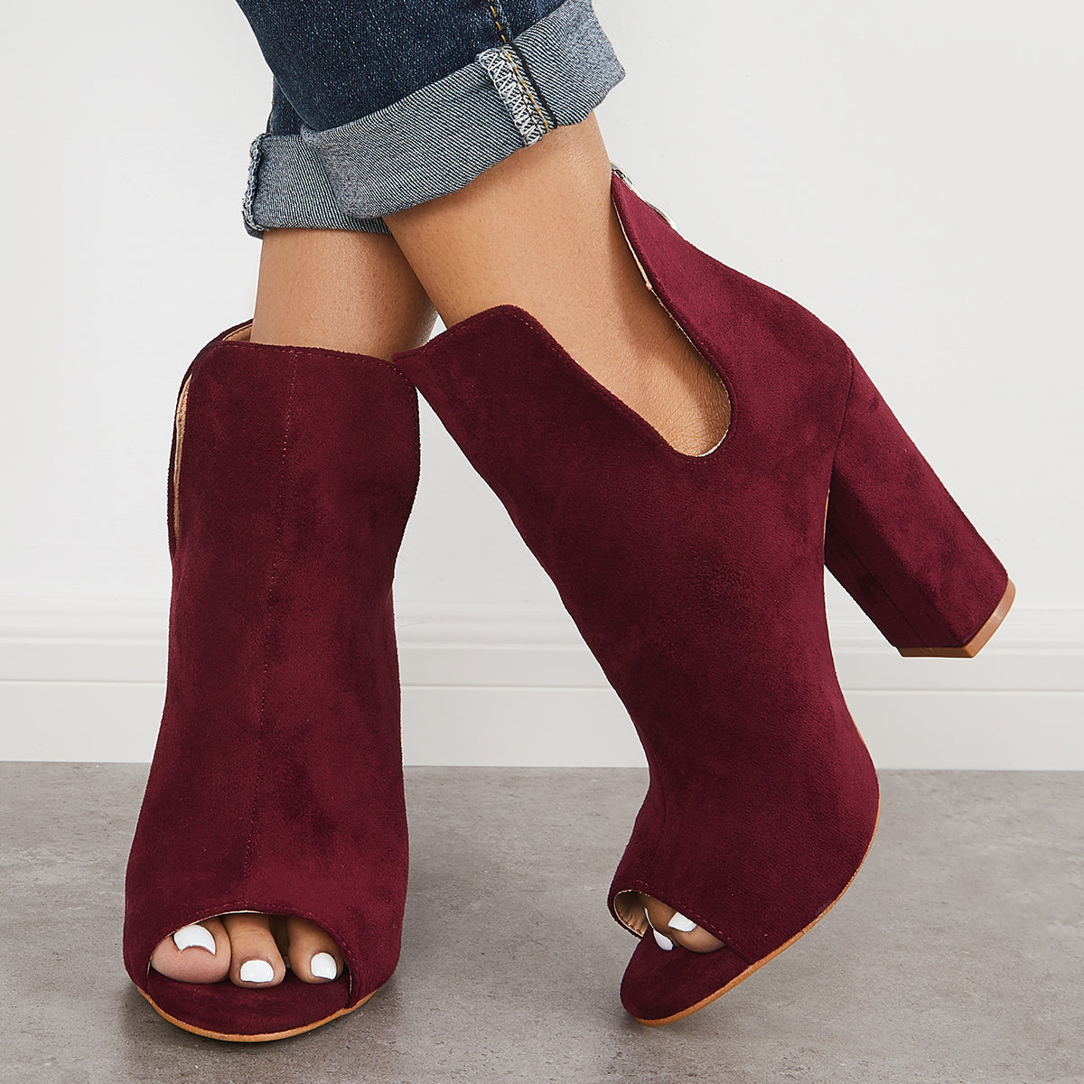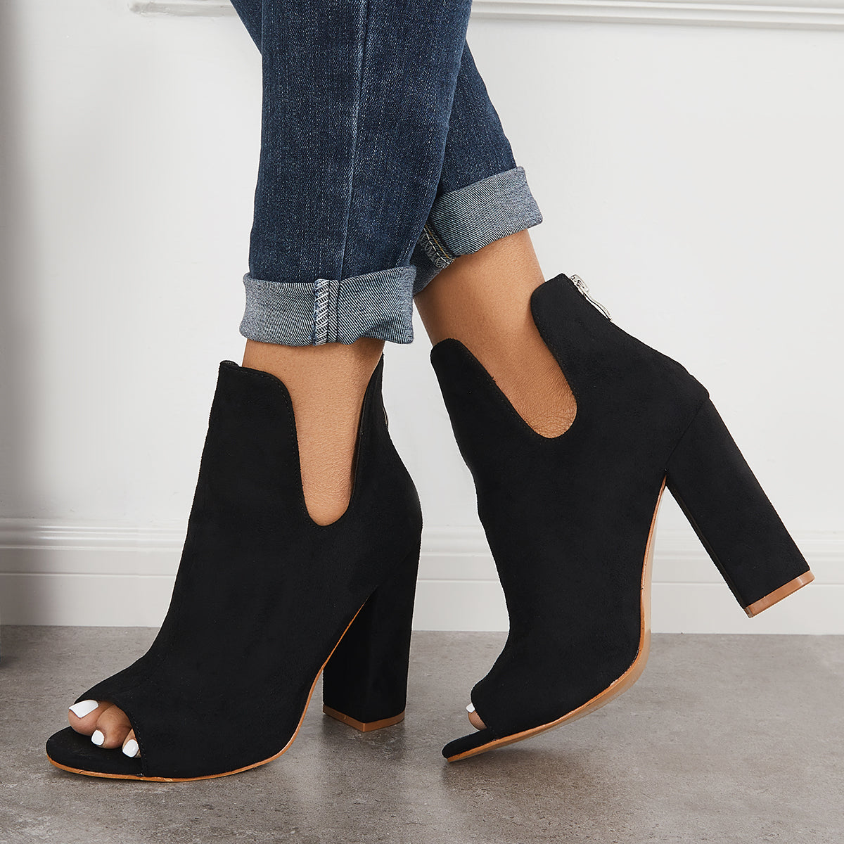 Cut Out Peep Toe Block Chunky High Heel Ankle Boots