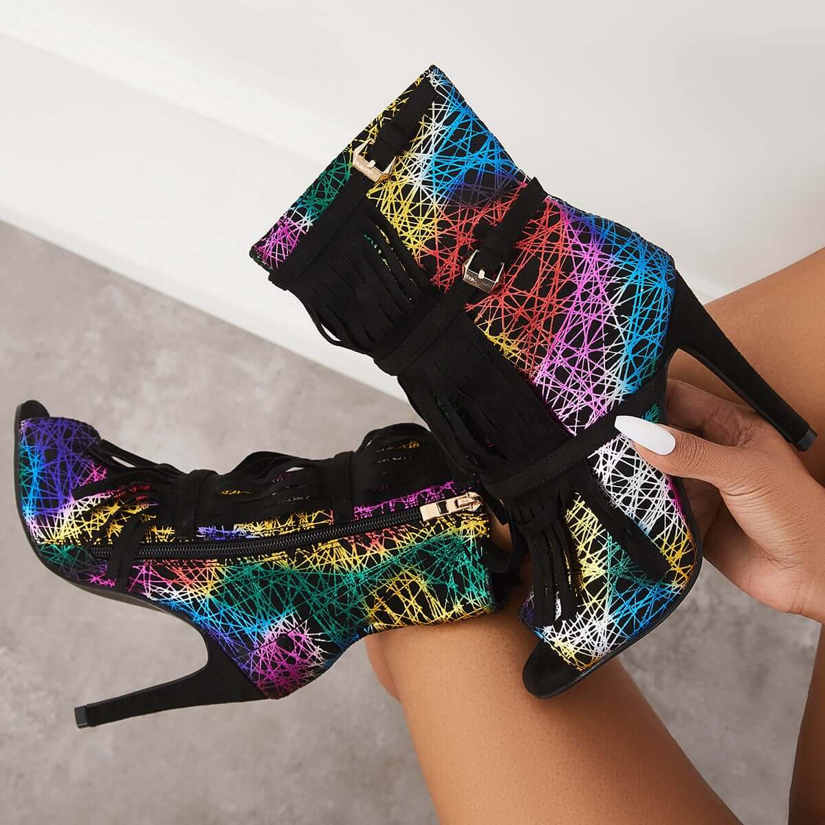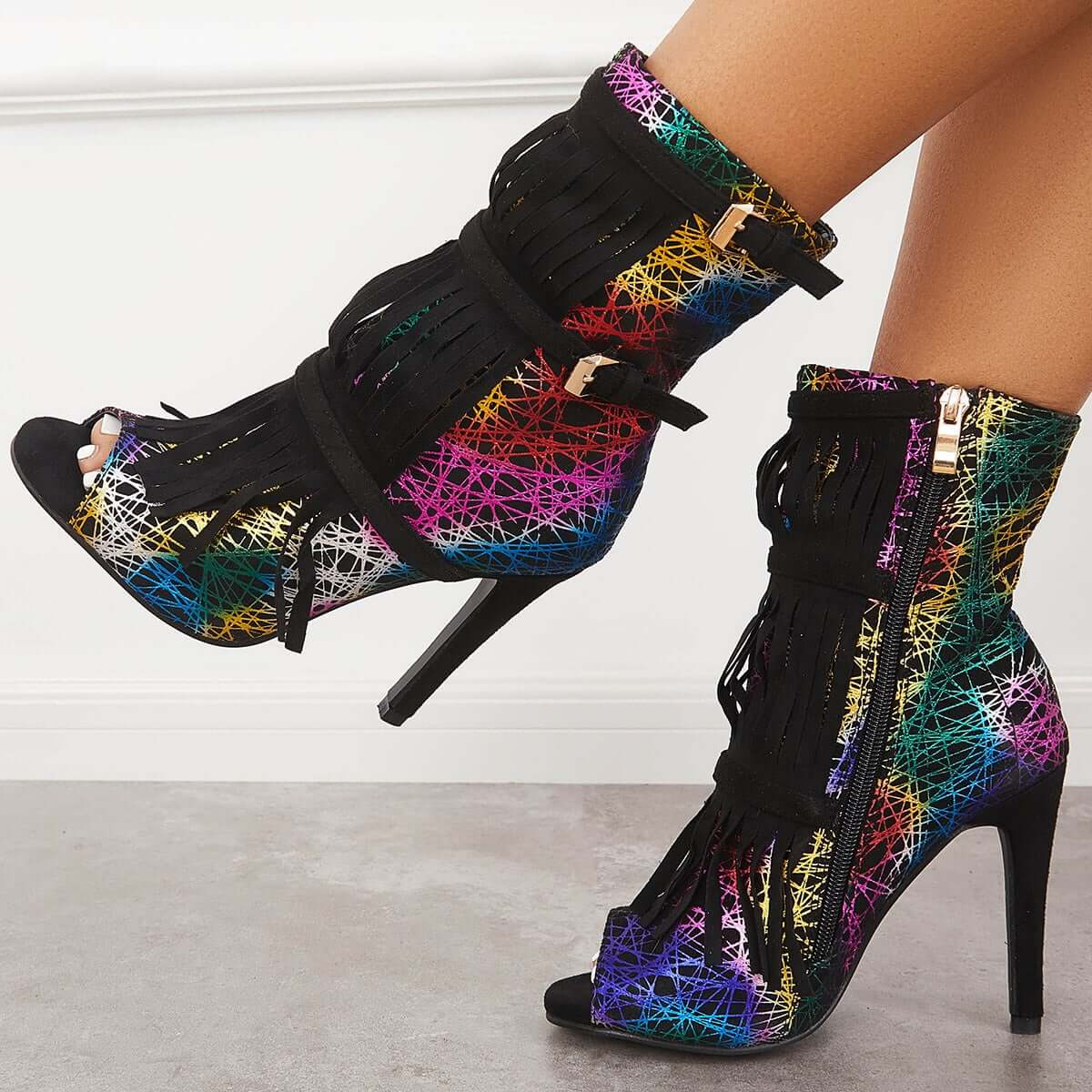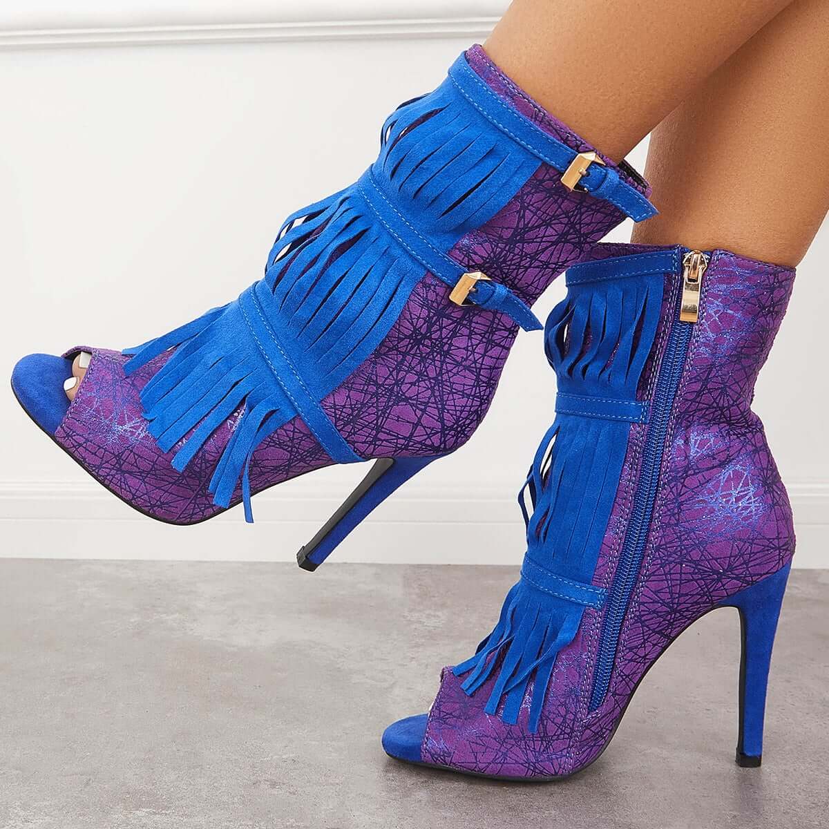 Fashion Fringe Peep Toe Stilettos High Heels Ankle Boots