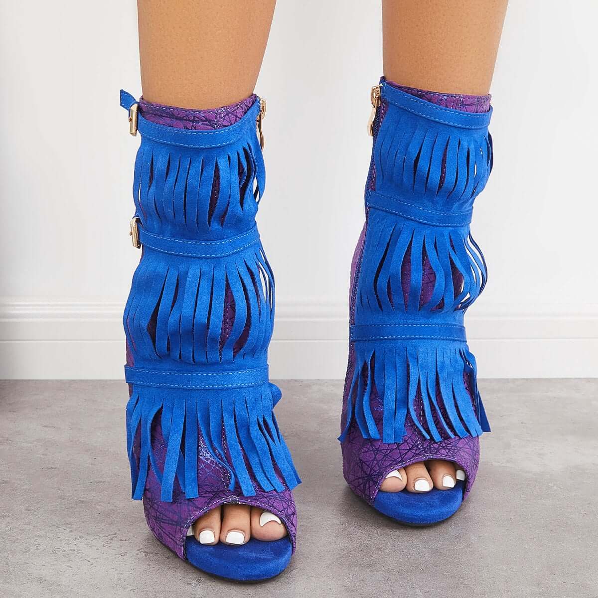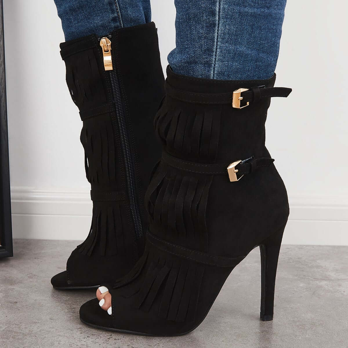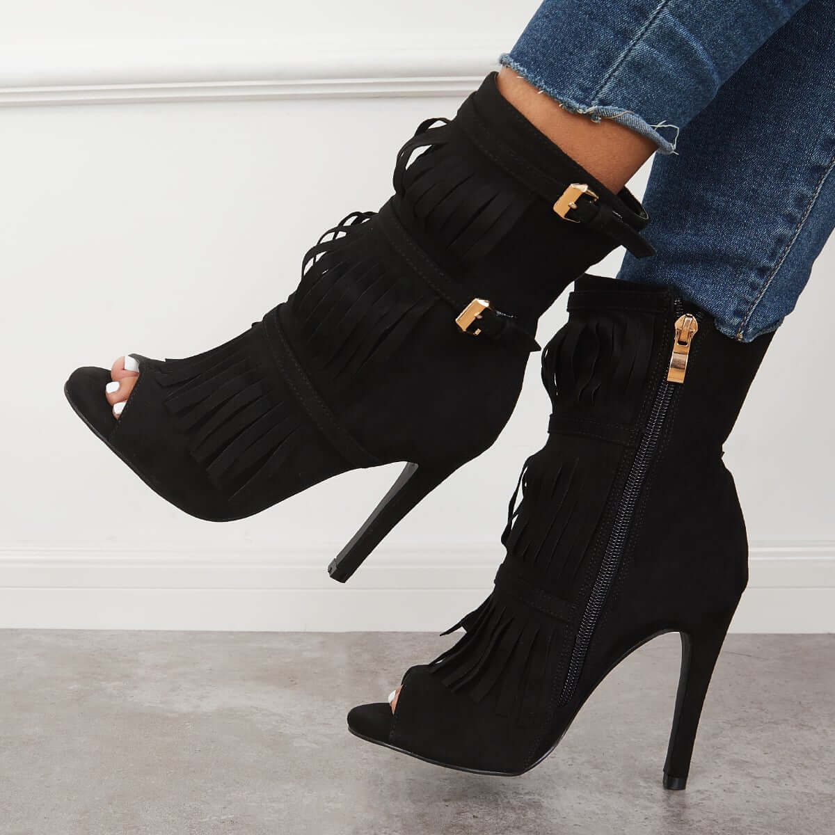 Fashion Fringe Peep Toe Stilettos High Heels Ankle Boots