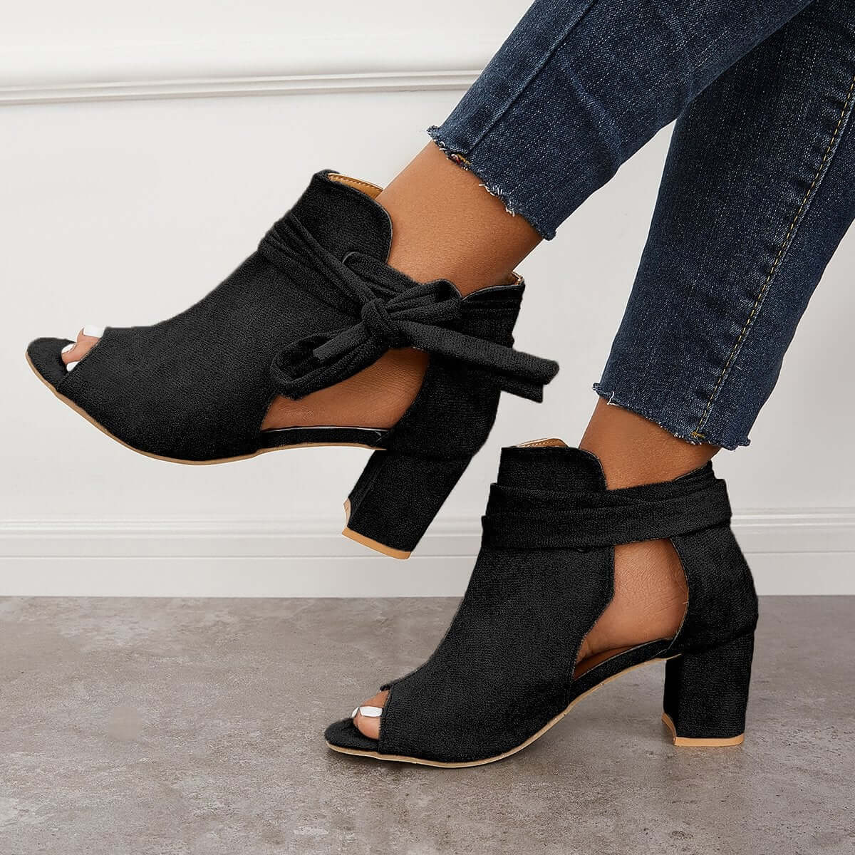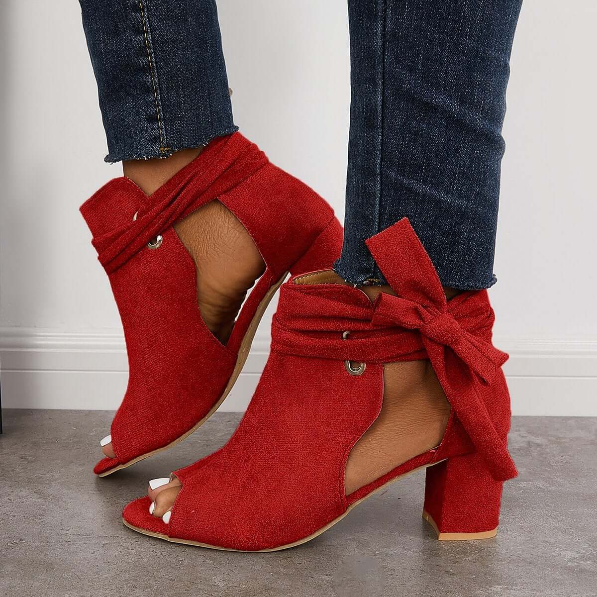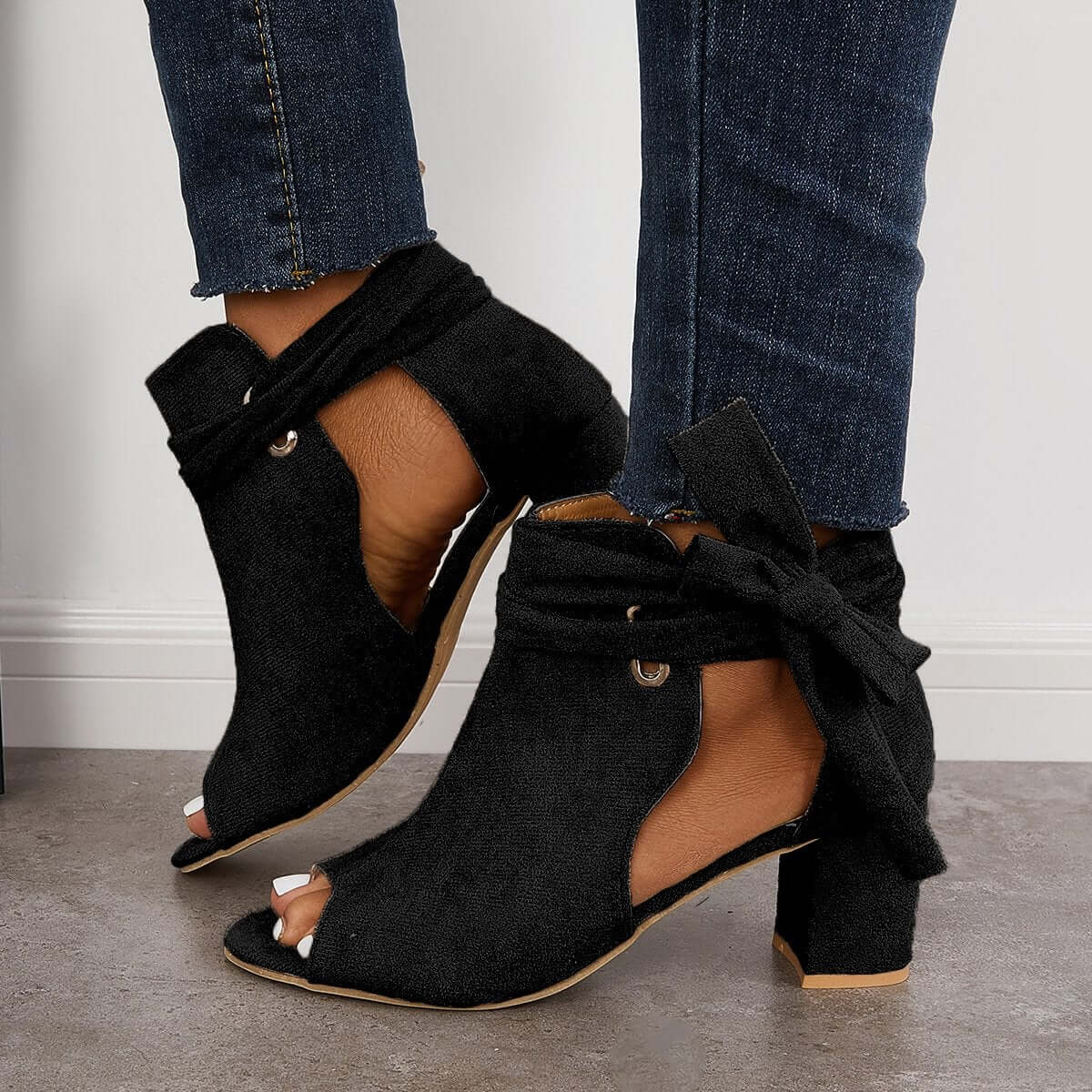 • Hollow Chunky High Heels Lace Up Bowknot Ankle Strap Sandals