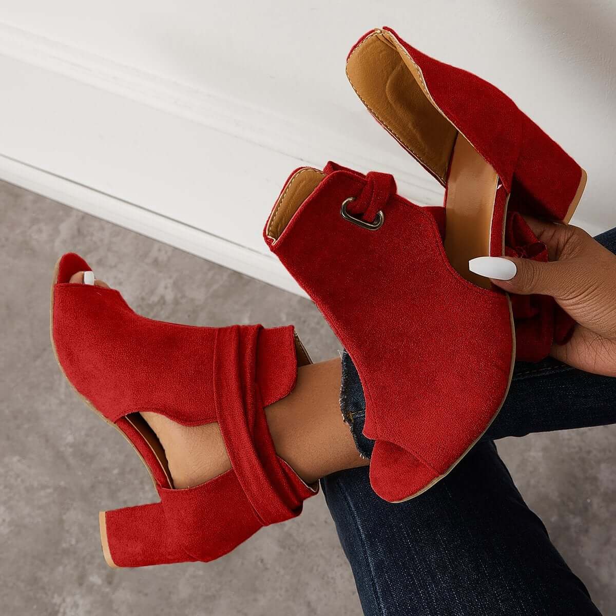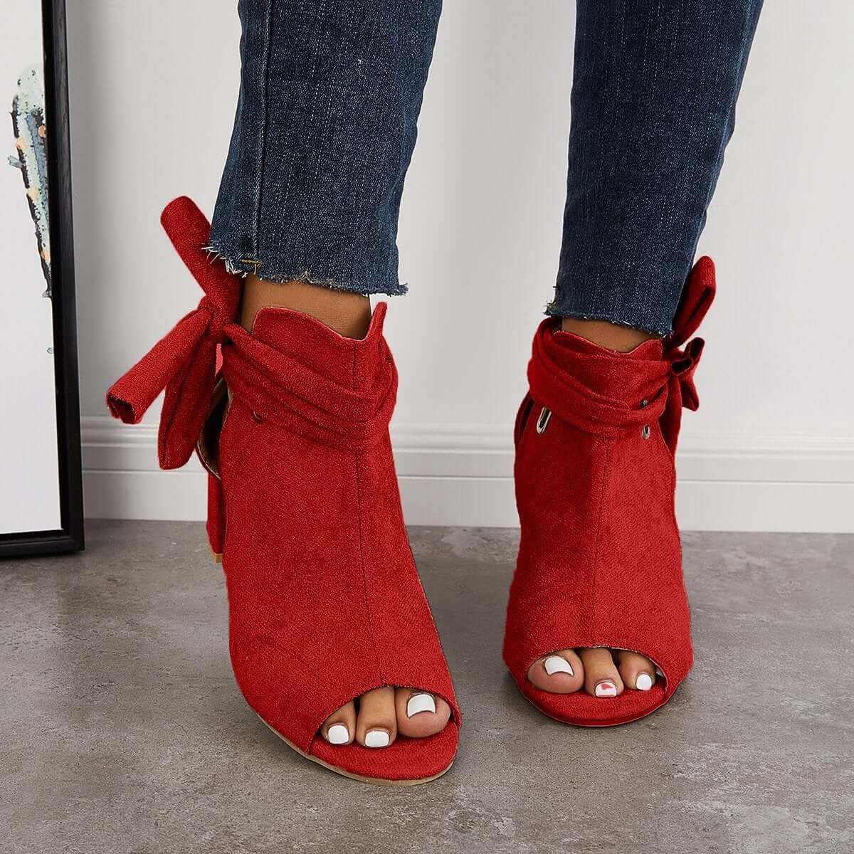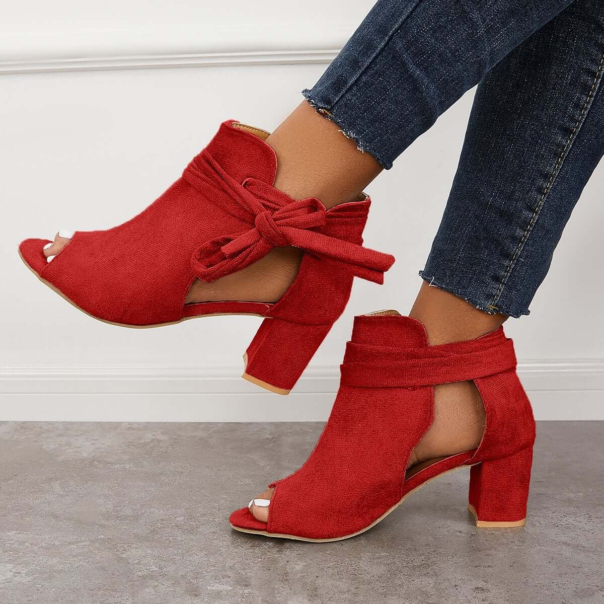 • Hollow Chunky High Heels Lace Up Bowknot Ankle Strap Sandals