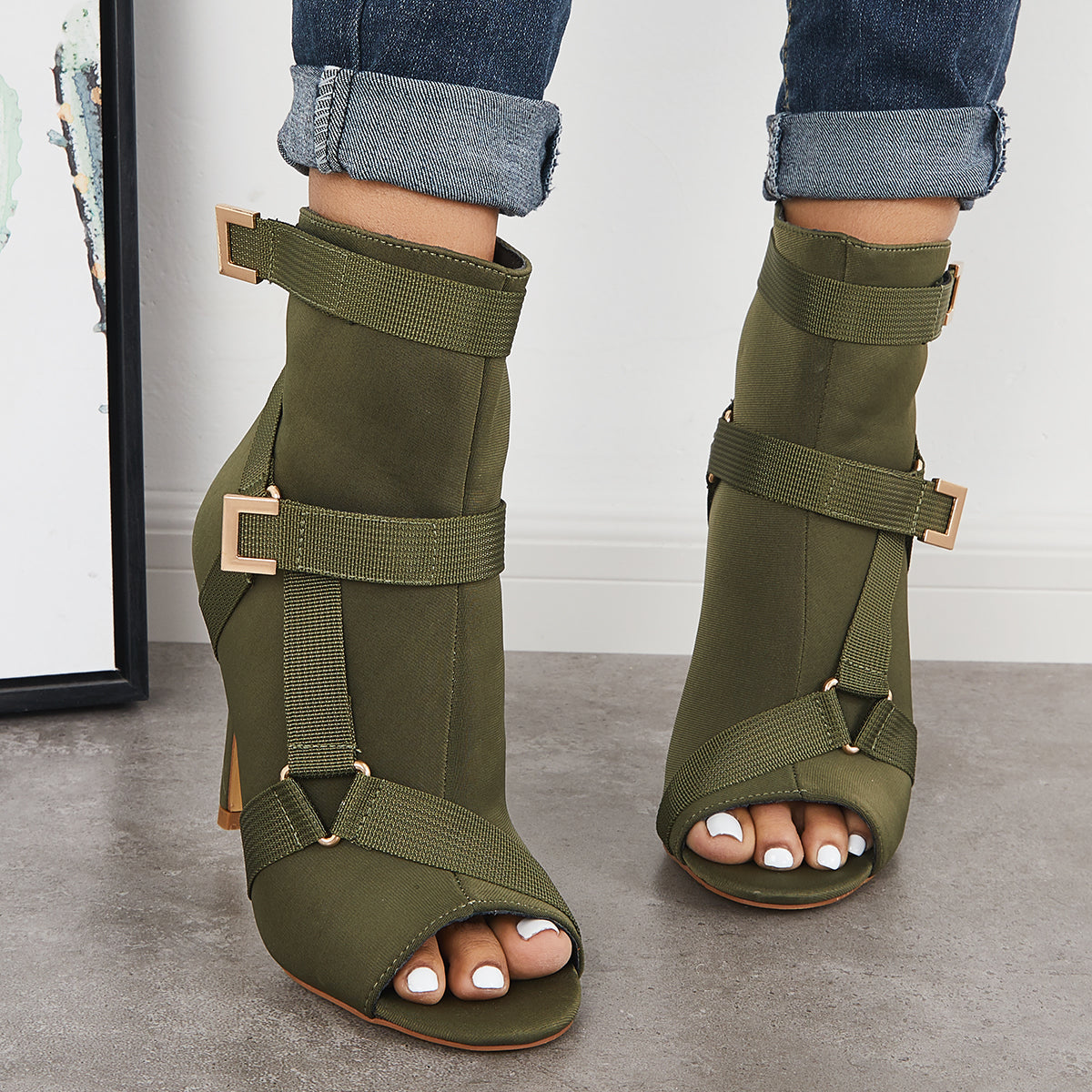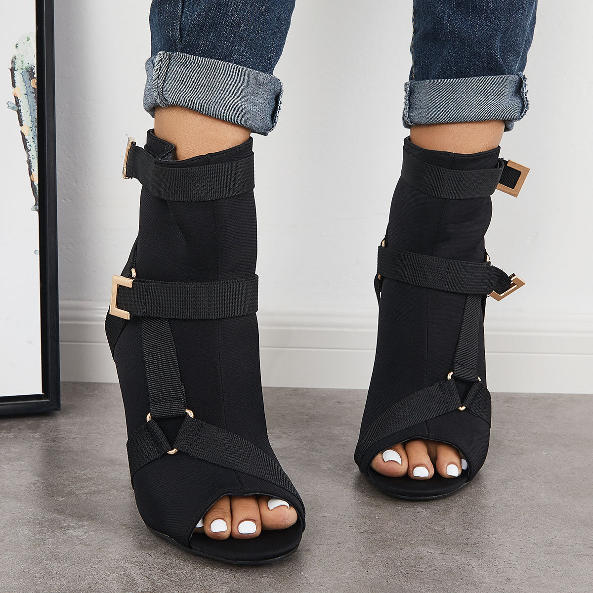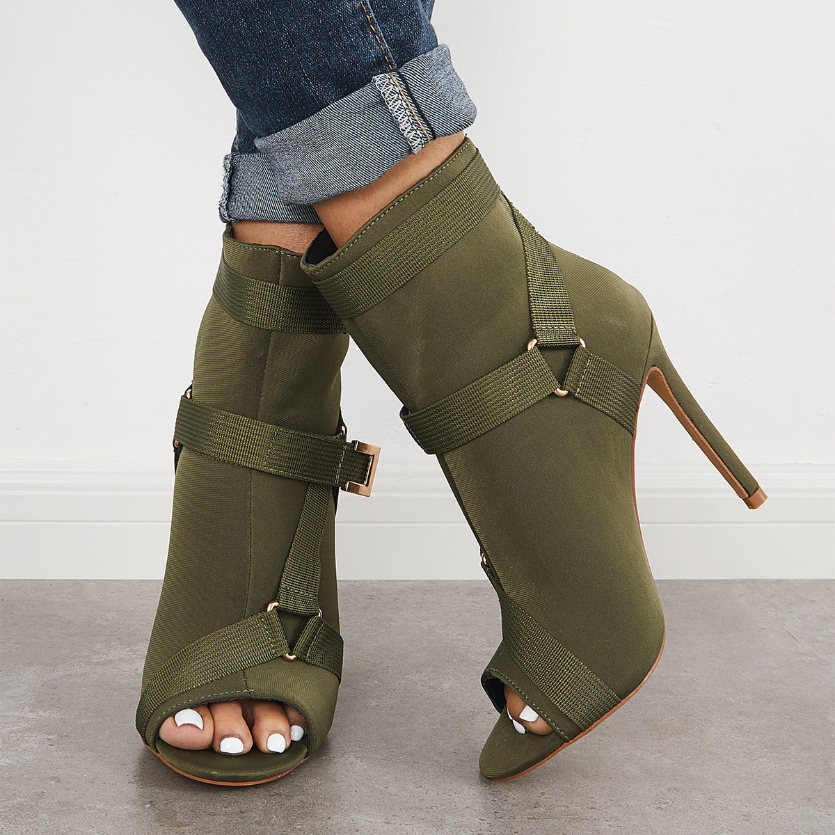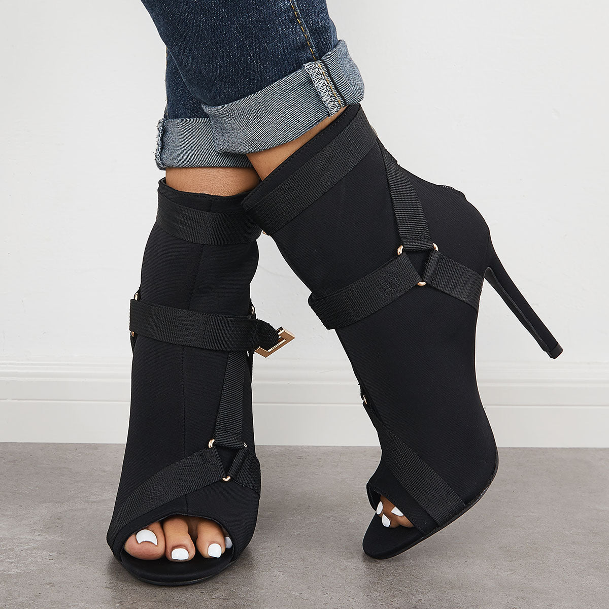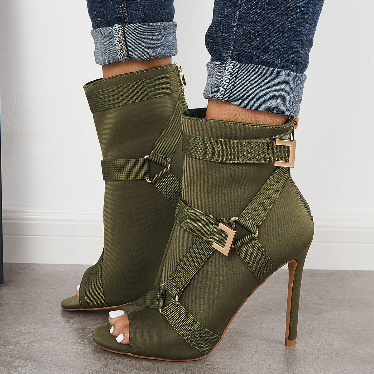 • Peep Toe Stiletto High Heels Back Zipper Ankle Boots