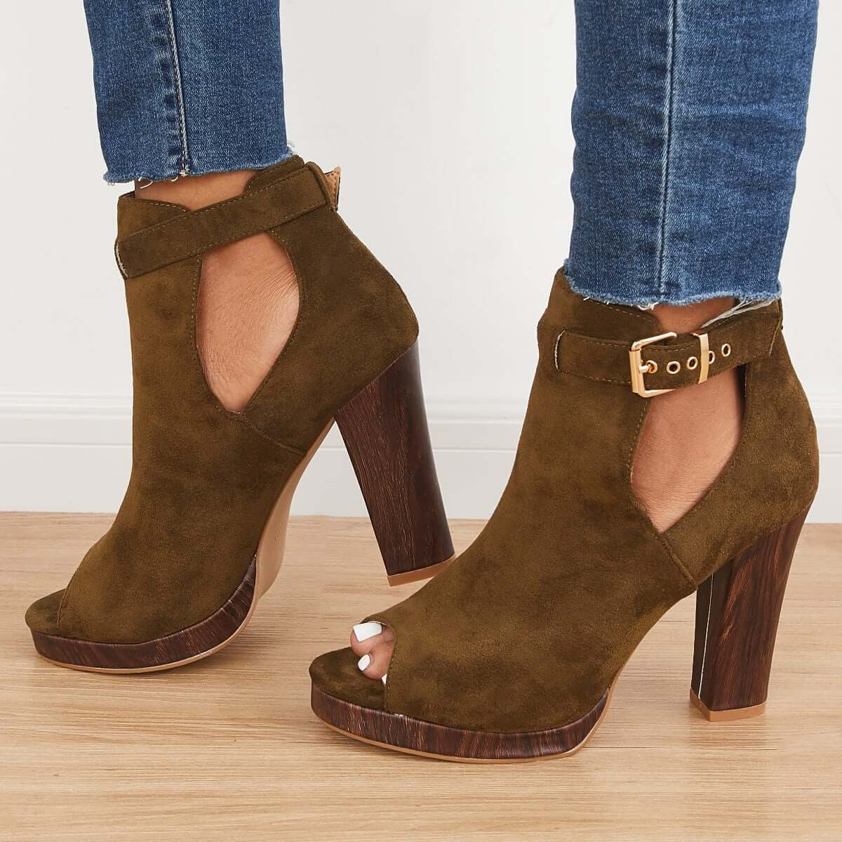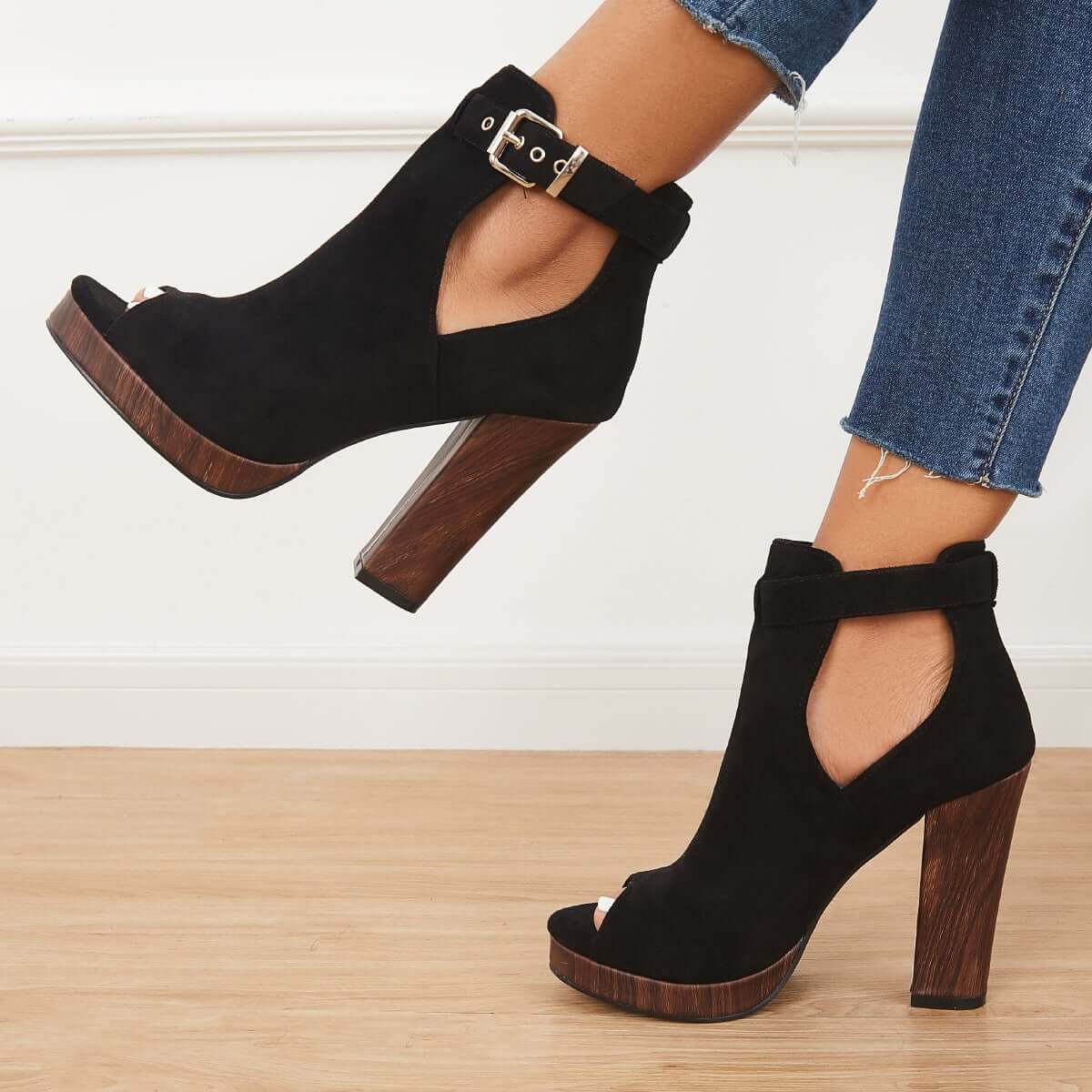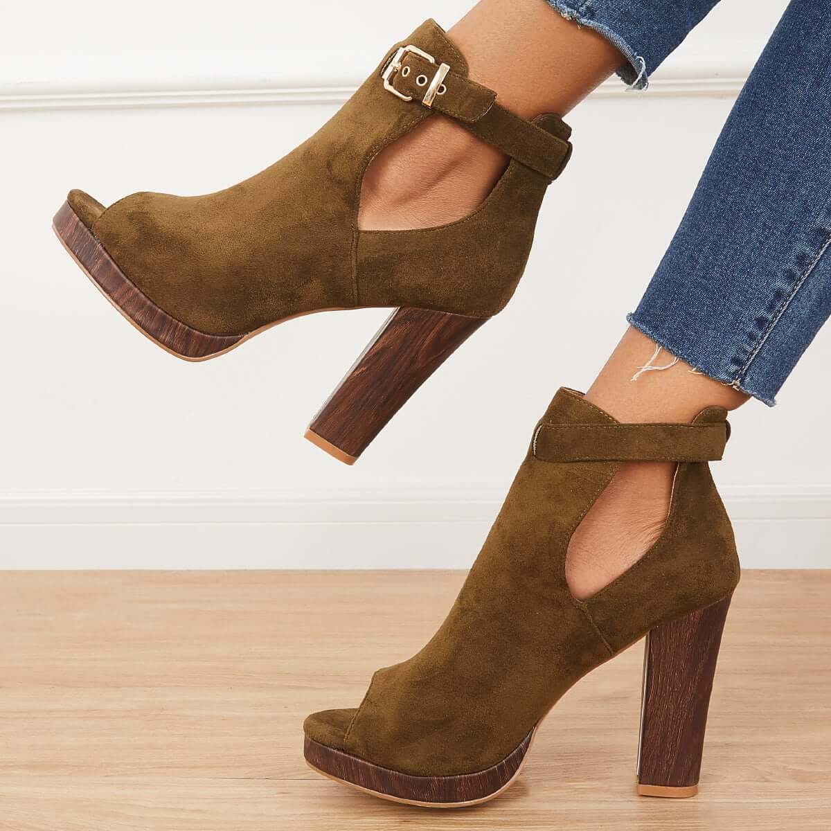Platform Peep Toe Ankle Booties Chunky Block Heel Dress Boots