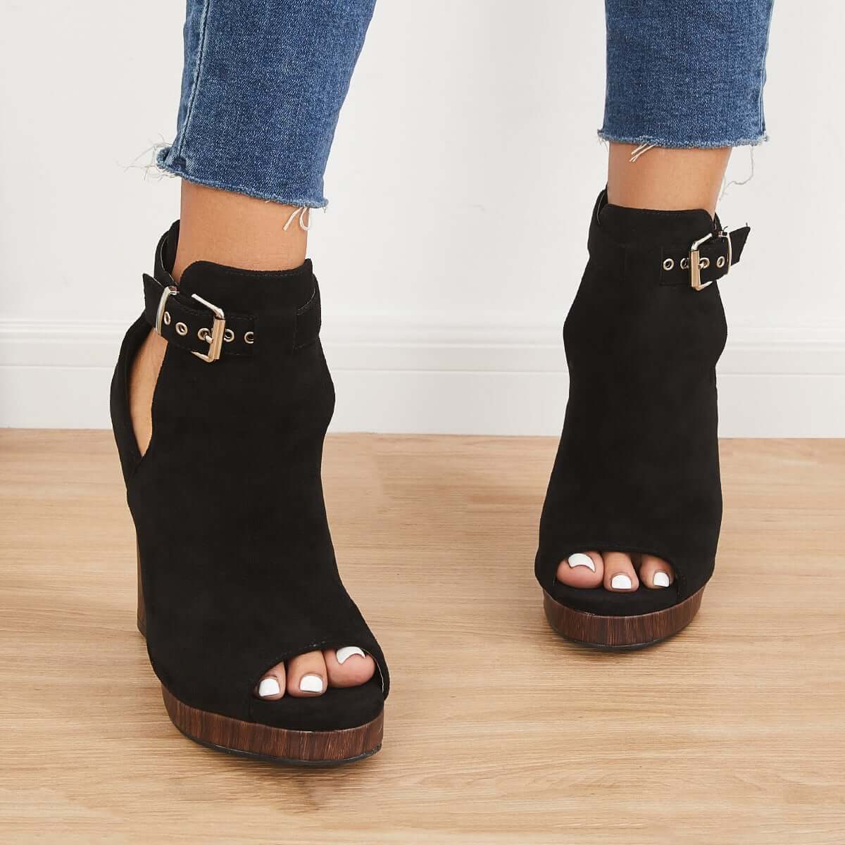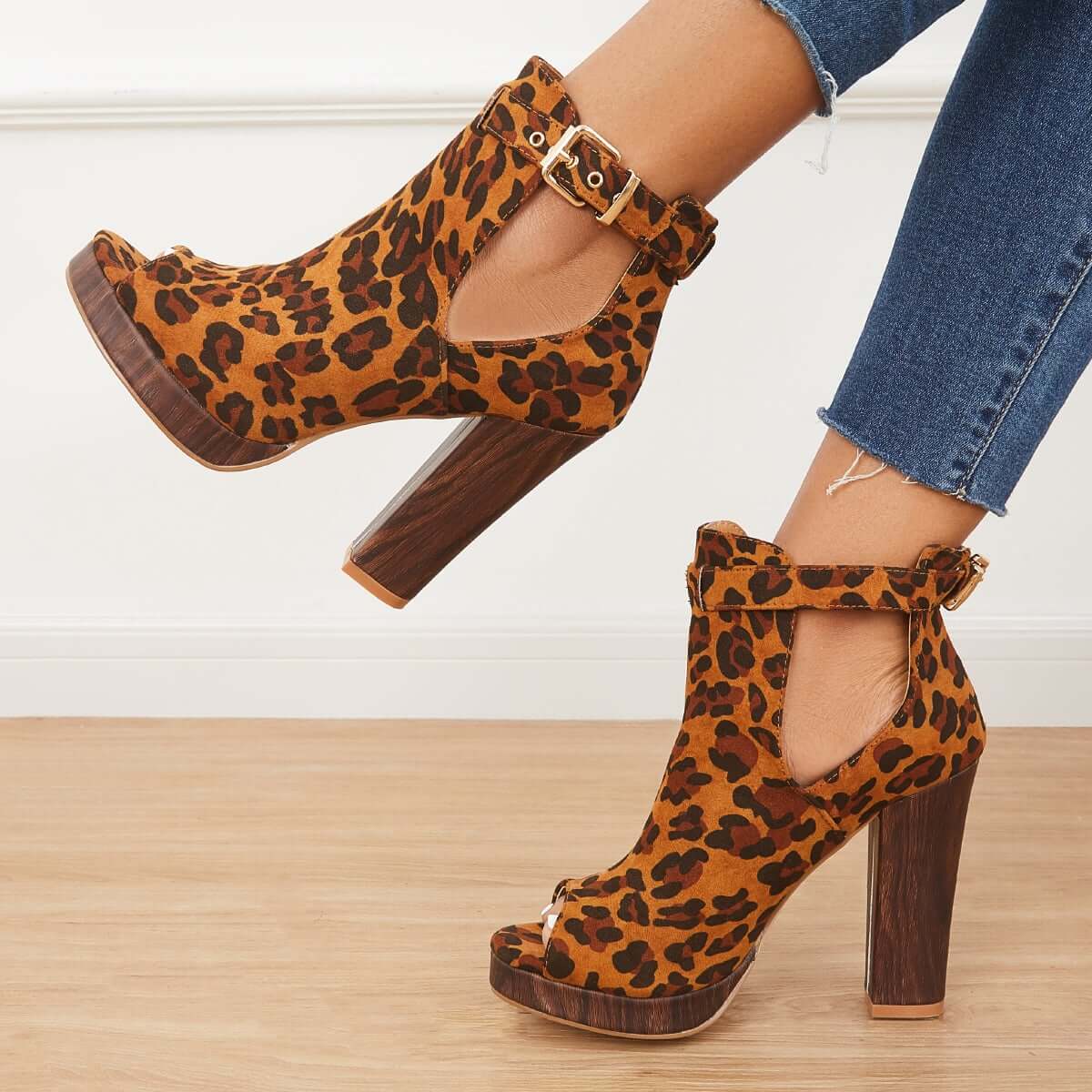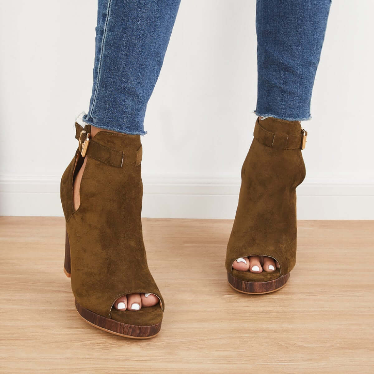 Platform Peep Toe Ankle Booties Chunky Block Heel Dress Boots